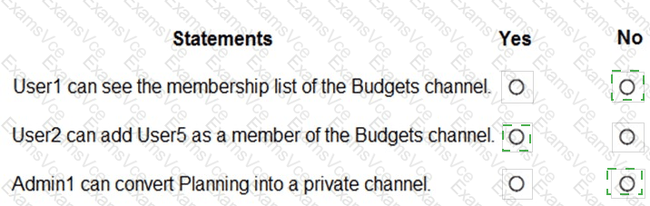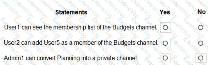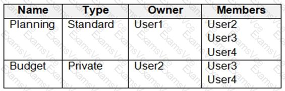 You have a Microsoft 365 subscription that uses Microsoft Teams and contains the users shown in the following table.