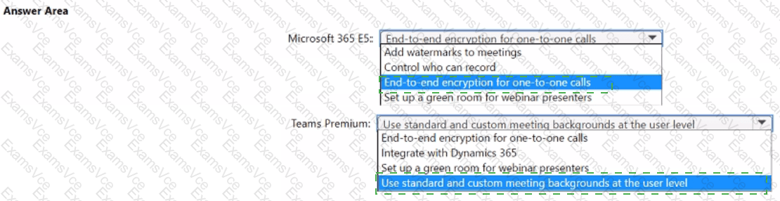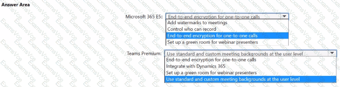 Which feature is included in Microsoft 365 E5, and which feature is exclusive with Teams Premium? To answer, select the appropriate options in the answer area.
