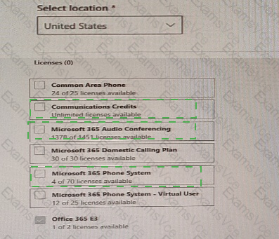 Which three licenses should you assign? To answer, select the licenses in the answer area.