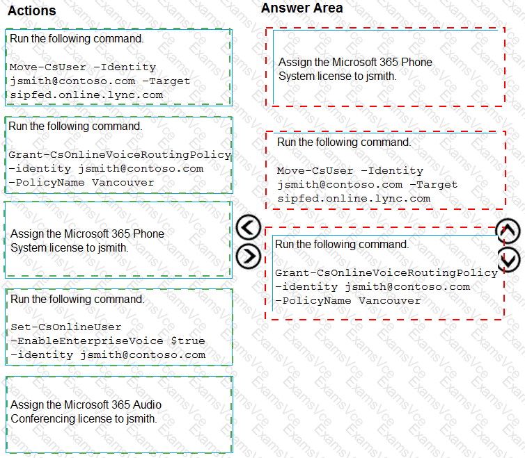 You need to migrate a Vancouver facility user named jsmith from Skype for Business Server to Teams.