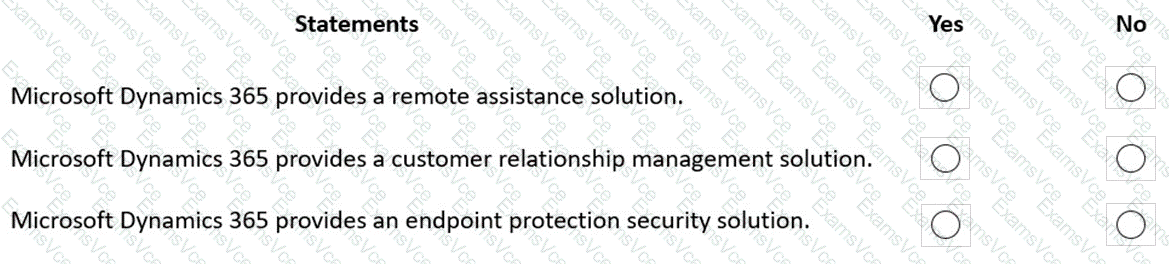 Instructions: For each of the following statements, select Yes if the statement is true. Otherwise, select No.