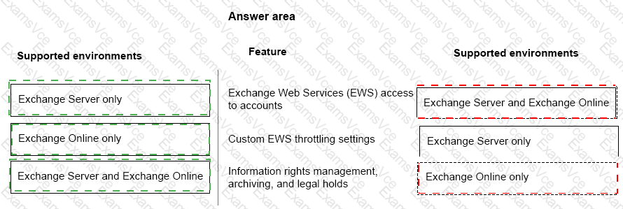 You need to identify differences between the features in Exchange Online and Exchange Server.