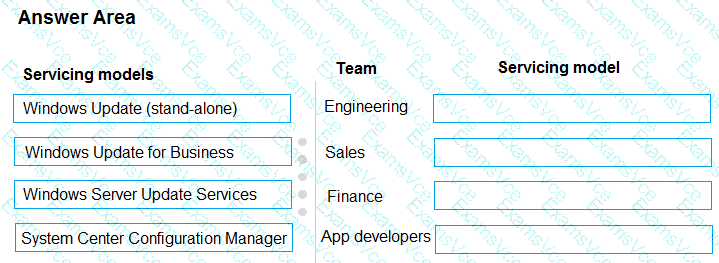 You need to recommend the appropriate servicing models toupdate employee devices.