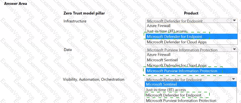 You need toidentify the Microsoft 365 products that the company can use for each Zero Trust model pillar.