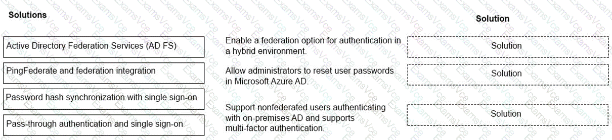 Match each solution to its appropriate scenario. To answer, drag the appropriate solutions from the column on the left to the scenarios on the right. Each solution may be used once, more than once, or not at all. Each correct match is worth one point.