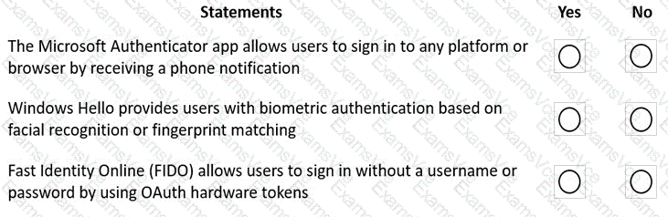Instructions: For each of the following statements, select Yes if the statement is true. Otherwise,select No.