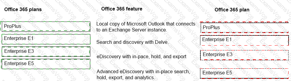 Which subscription plans should you recommend? Toanswer, drag the appropriate plans to the correct features. Each plan may be used once, more than once, or not at all.