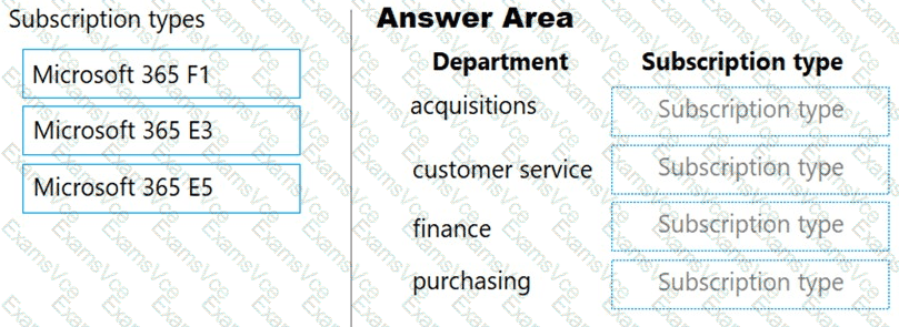 Which type of subscriptionshould you use for each department? To answer, drag the appropriate license types to the correct departments. Each license type may be used once, more than once, or not at all. You may need to drag the split bar between panes or scroll to view content.