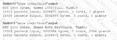 A network technician is troubleshooting network latency and has determined the issue to be occuring two network switches( Switch10 and Switch11). Symptoms reported included poor video performance and slow file copying. Given the following informtion: