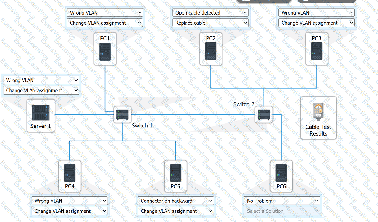 Review the cable test results first, then diagnose by clicking on the appropriate PC,