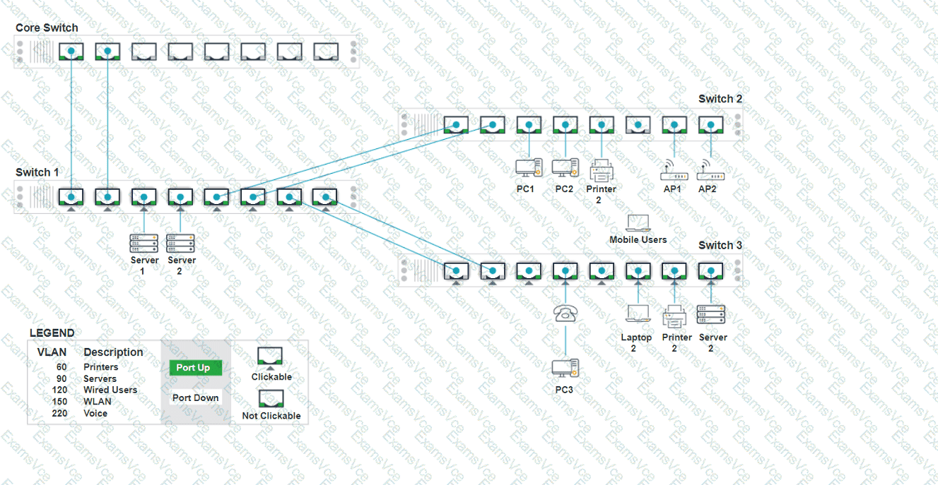 Core Switch Ports should be configured as needed for uplinks to Switch 1.