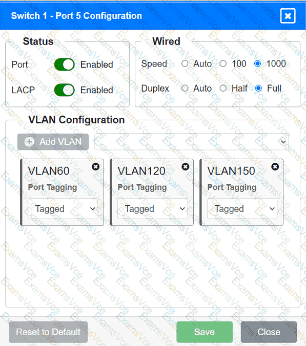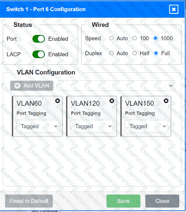 VLAN Configuration: Tagged for VLAN60, VLAN120, VLAN150