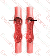 Veins throughout the body contain structures, indicated by arrows, in the image below.