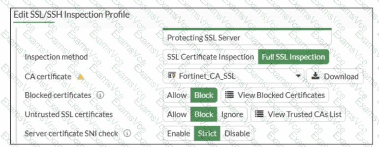 Based on the exhibit and the FortiOS 7.6 SSL/SSH Inspection documentation, the correct answer is C.