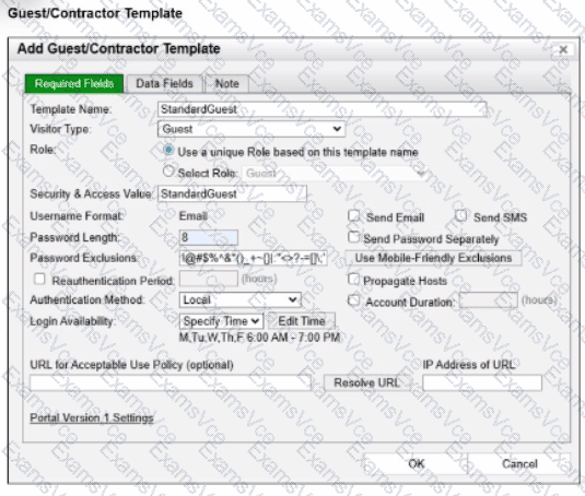 In FortiNAC-F, theGuest & Contractor Templateis a configuration object that defines the parameters for accounts created by sponsors or through self-registration. One of the critical security controls within this template is theLogin Availabilitysetting. This setting restricts the specific days and times during which a guest or contractor is permitted to authenticate and access the network.