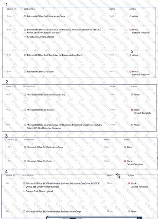 AcmeCorp has recently begun using Microsoft 365. The organization is concerned that employees will start using third-party non-AcmeCorp OneDrive instances to store company data. The CISO asks you to use Netskope to create a policy that ensures that no data is being uploaded to non-AcmeCorp instances of OneDrive.
