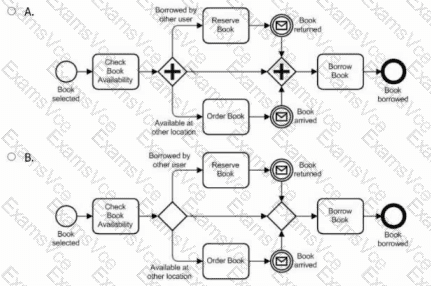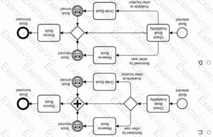 A user wants to borrow a book from her public library. At the library, she checks the avallability of the book. If it is available, she borrows it. If it is borrowed by an other user, she reserves the book and borrows it when it is returned by the other user. If the book is available at another location, she orders the book and borrows it when it arrives from the other location.