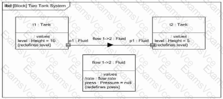 A system consists of two identical tanks each containing a different level of fluid. The tanks are connected together by a port at the bottom of each tank. This system is modeled m the following diagram: