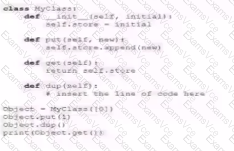Which of the following lines of code will work flawlessly when put independently inside the add_new () method in order to make the snippet's output equal to [0, 1, 1] ? (Select two answers)