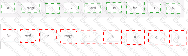 Arrange the code boxes in the correct positions in order to obtain a loop which executes its body with the level variable going through values 5, 1, and 1 (in the same order).