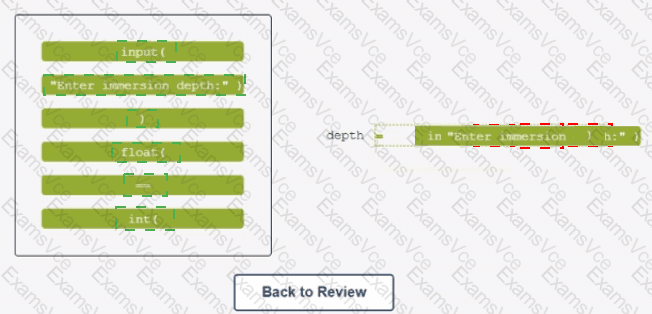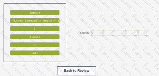 Insert the code boxes in the correct positions in order to build a line of code which asks the user for an Integer value and assigns it to the depth variable.