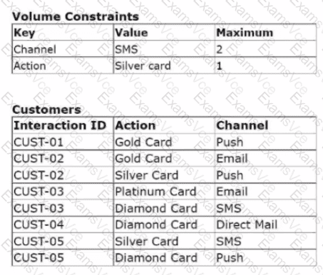 constraint mode. The following tables show the configuration of the volume constraints and the list of customers in the outbound segment: