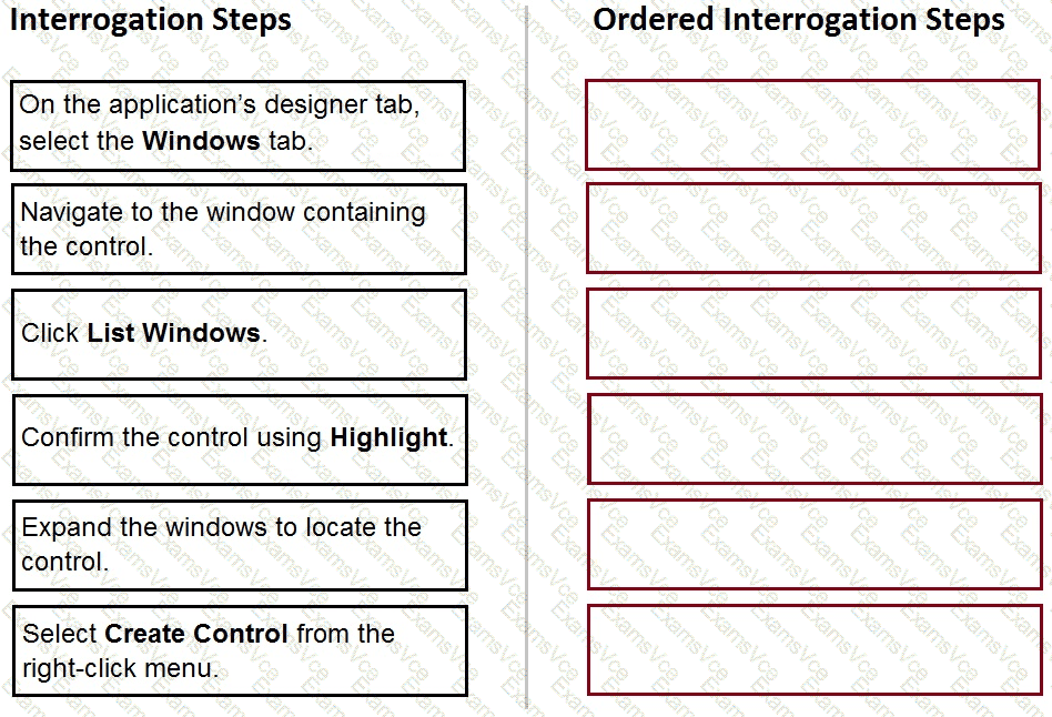 When interrogating a Windows control, the drag and drop Default interrogation method does not work. You decide to use the Create Control option to interrogate the control.