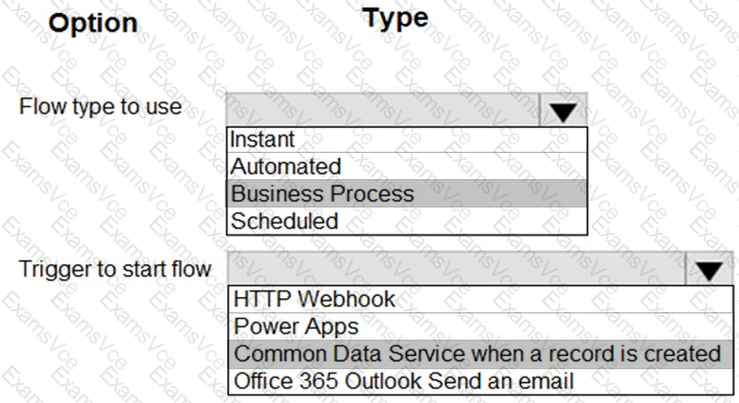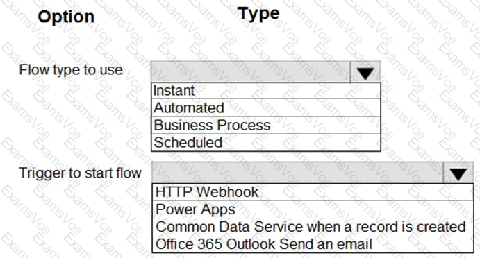 How should you create the flow? To answer, select the appropriate options in the answer area.