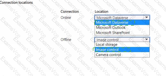 You need to explain to the salespeople where to store photos taken onsite in situations with both offline and online connections. Which locations should you recommend for each connection type? To answer, select the appropriate options in the answer area. NOTE Each correct selection is worth one point.