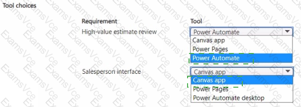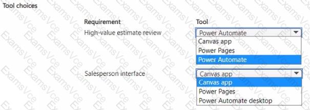 You need to implement the Microsoft Power Platform tools that meet the requirements of the office workers, office manager, and salespeople.