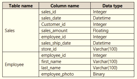 You are creating an analytics report that will consume data from the tables shown in the following table.