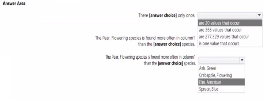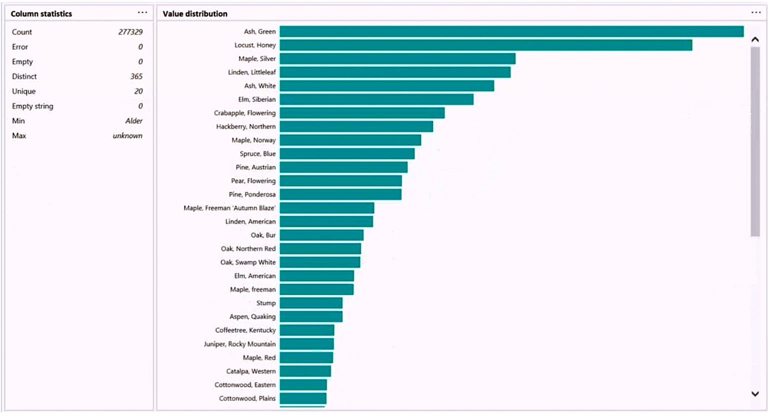 You have a table that contains a column named column1. Column statistics and Value distribution for column1 are shown in the following exhibit.