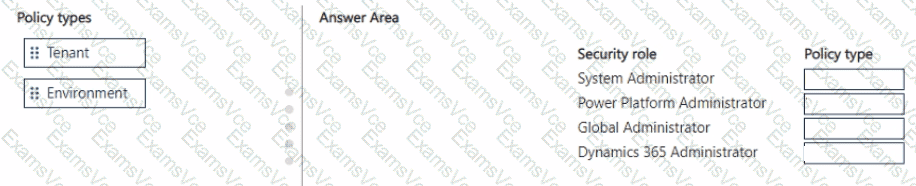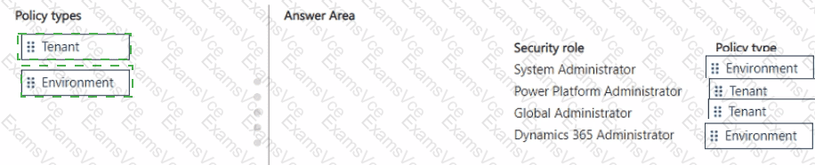 Which policy type should you recommend for each security role? To answer, move the appropriate policy types to the correct security roles. You may use each policy type once, more than once, or not at all. You may need to move the split bar between panes or scroll to view content.