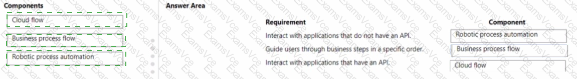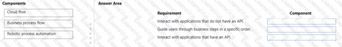 Which components should you use' To answer, drag the appropriate components to the correct requirements. Each component may be used once, more than once, or not at all. You may need to drag the split bar between panes or scroll to view content.