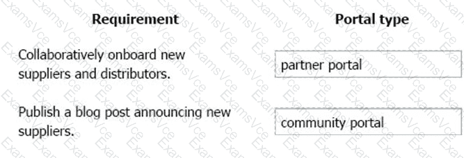 Which portal types should you use? To answer, drag the appropriate portal types to the correct requirements. Each portal type may be used once, more than once, or not at all. You may need to drag the split bar between panes or scroll to view content.