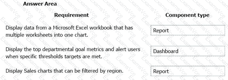 You need to recommend the type of Power BI components that the company should use.