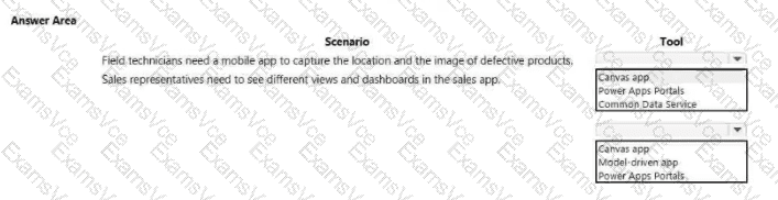 A company plans to use Power Platform to build apps that address specific business challenges. You need to recommend the appropriate types of Power Apps to use. What should you recommend? To answer, select the appropriate options in the answer area.
