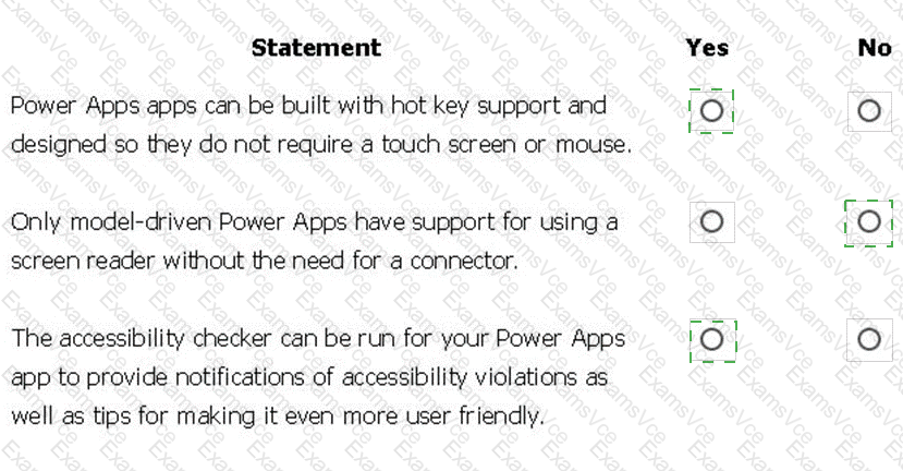 You are creating a model-driven Power Apps app. You want to ensure that the app can be used by individuals who have vision impairments.