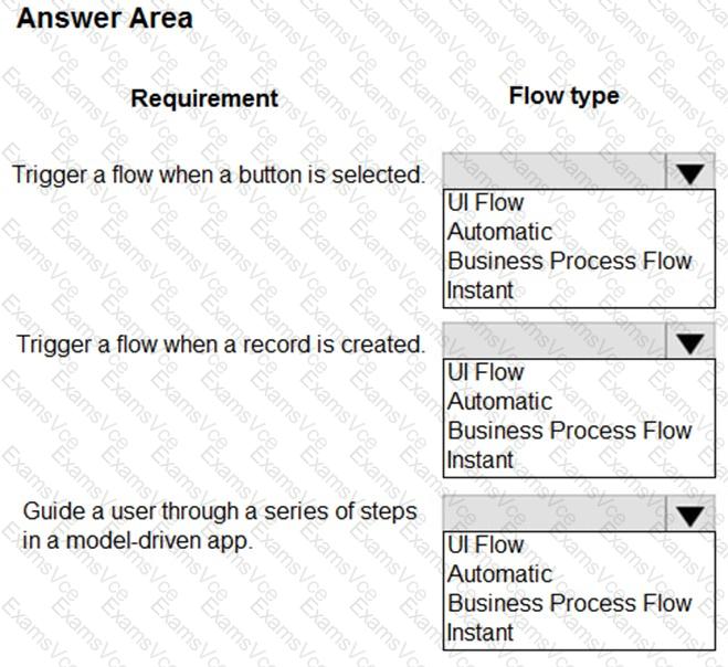 Which flow types should you use? To answer, select the appropriate options in the answer area.