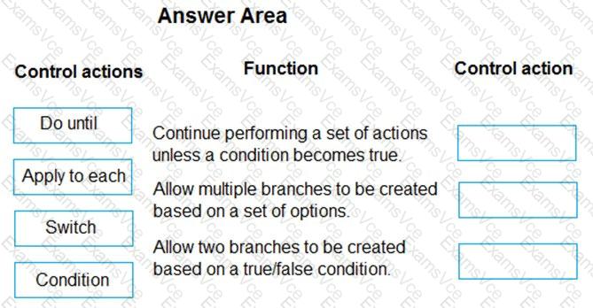 Which control action should you use? To answer, drag the appropriate control actions to the correct functions. Each control action may be used once, more than once, or not at all. You may need to drag the split bar between panes or scroll to view content.