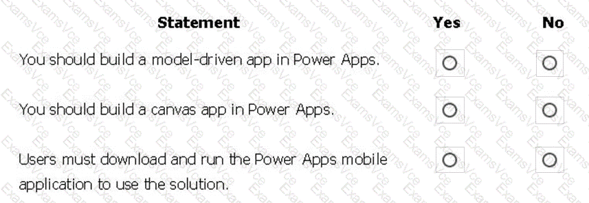 For each of the following statements, select Yes it the statement is true. Otherwise, select No.