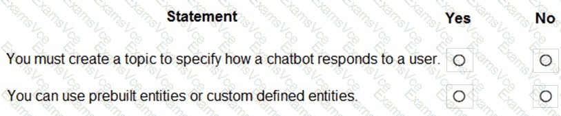 For each of the following statements, select Yes if the statement is true. Otherwise, select No.
