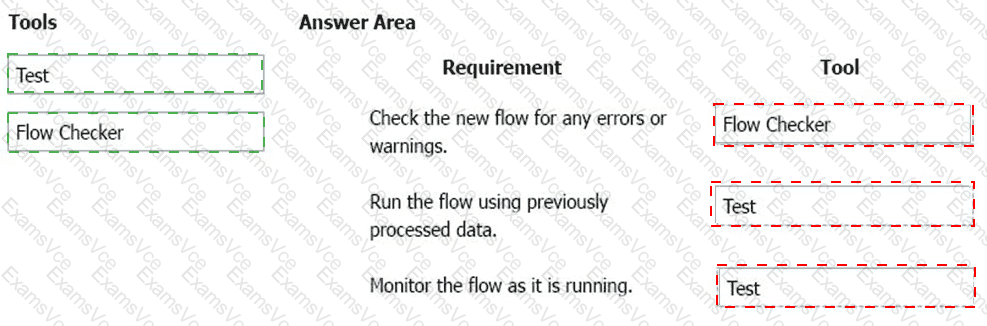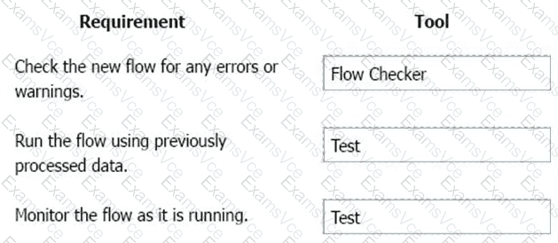 Which flow editing utilities should you use? To answer, drag the appropriate tools to the correct requirements. Each tool may be used once, more than once, or not at all You may need to drag the split bar between panes or scroll to view content.