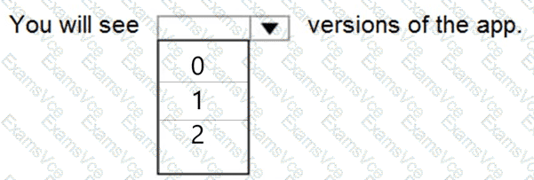How many versions of the app are displayed in the Version tab for the app? To answer, select the appropriate option in the answer area.