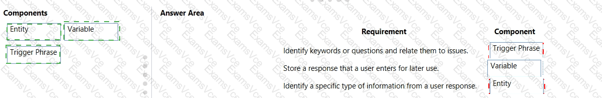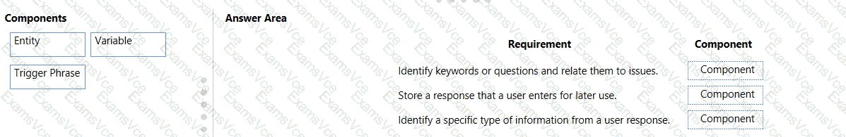 Which components should you use? To answer, drag the appropriate components to the correct requirements. Each component may be used once, more than once, or not at all. You may need to drag the split bar between panes or scroll to view content.