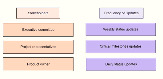 Match the stakeholders on the left with the appropriate frequency for updates.