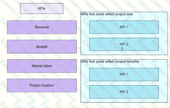 For an ongoing project, match the key performance indicators (KPIs) on the left to the correct categories on the right.