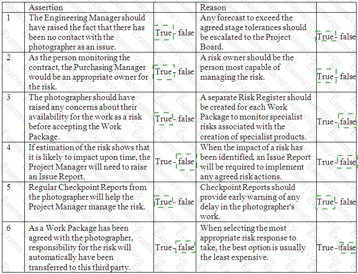 The Engineering Manager was made aware of this requirement but when asked he reported that he has received no communication from the photographer. The Project Manager has tried to call the photographer and has had no response. The Project Manager believes there is a risk that Portraits Ltd are overbooking work and prioritizing other clients' work. If Portraits ltd do not deliver on schedule the project will be delayed and the expected benefits will be reduced.