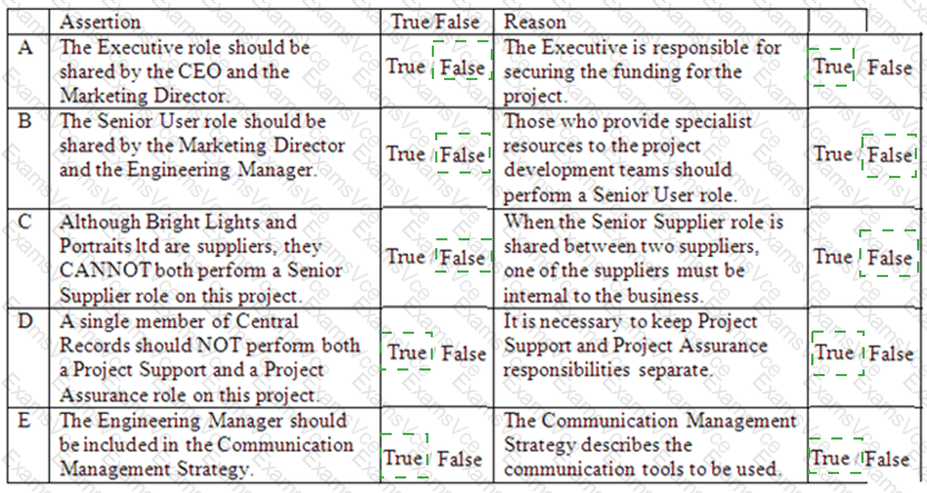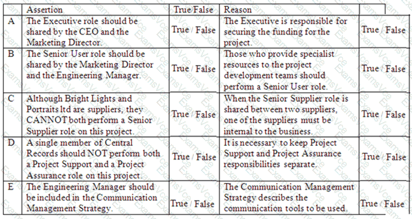 Lines 1 to 5 in the table below consist of an assertion statement and a reason statement. For each line identify the appropriate option, from options A to E, that applies. Each option can be used once, more than once or not at all.