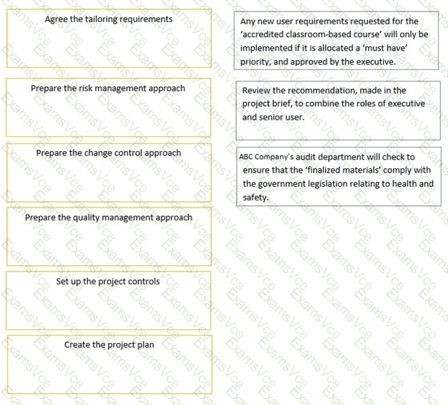 ABC Company has commissioned a project in response to recent changes in government legislation relating to health and safety on construction sites. The project will deliver “capability to provide health and safety training”, including the materials needed for classroom-based training and e-learning. The expected benefits for construction companies include a reduction in lost days and legal costs due to accidents.